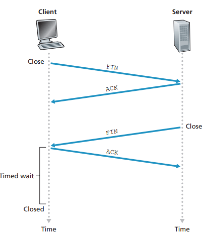 서버가 이 세그먼트를 수신하면, 확인응답 세그먼트를 보내고 마찬가지로 클라이언트에 FIN 세그먼트를 전송한다