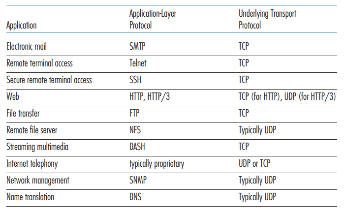 전자메일, 원격 터미널 접속, 웹 등은 신뢰적인 데이터 전송 서비스가 필요하므로 TCP를 이용하지만 그 외 많은 중요한 애플리케이션들이 TCP보다 UDP에서 동작한다