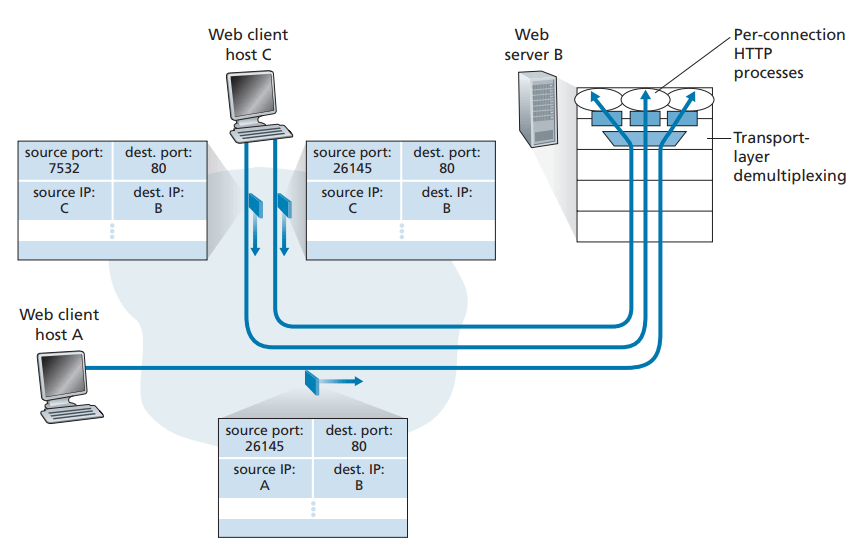 두 프로토콜은 호스트 대 호스트 전달을 프로세스 대 프로세스 전달로 확장하는 트랜스포트 계층 다중화(=역다중화)를 수행한다