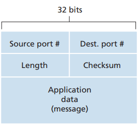 UDP는 애플리케이션 프로세스로부터 메세지를 가져와서 다중화/역다중화 서비스에 대한 출발지 포트 번호 필드와 목적지 포트 번호 필드를 첨부하고, 다른 두 필드를 추가한 후에 최종 세그먼트를 네트워크 계층으로 넘겨준다