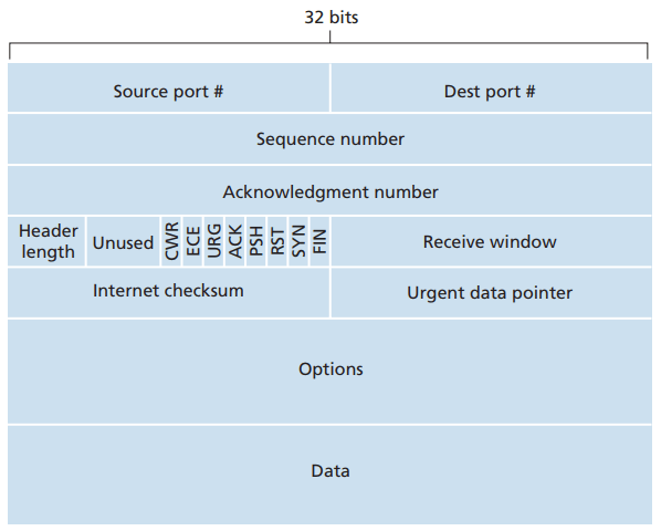 - Sequence number(순서 번호 필드) && Acknowledgment number(확인응답 번호 필드): 신뢰적인 데이터 전송 서비스 구현에서 사용