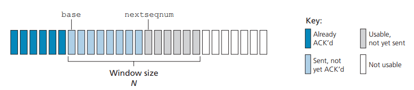 - [base, nextseqnum-1]는 송신은 되었지만 아직 확인응답되지 않은 패킷