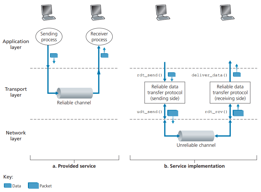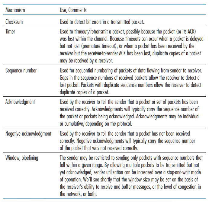 오류 검출, 수신자 피드백, 재전송 세 가지 부가 프로토콜 기능이 요구된다