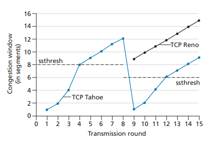 - 손실된 세그먼트는 혼잡을 의미하며, TCP 전송률은 이에 따라 한 세그먼트를 손실했을 때 줄여야 한다