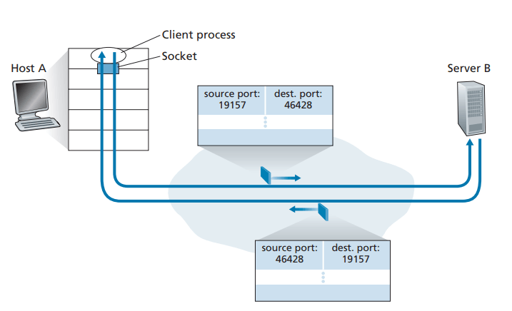 호스트의 각 소켓은 포트 번호를 할당 받고, 세그먼트가 호스트에 도착하면 트랜스포트 계층은 세그먼트 안의 목적지 포트 번호를 검사하고 상응하는 소켓으로 세그먼트를 보낸다
