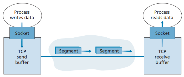 클라이언트 프로세스는 소켓을 통해 데이터의 스트림을 전달하고, TCP는 연결의 송신 버퍼로 데이터를 보낸다