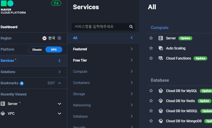 콘솔에 접근하고 Services - Server로 들어가서 서버 생성을 해줍니다