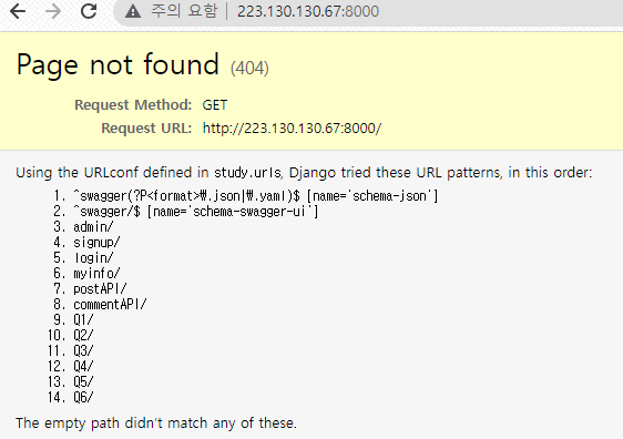 공인IP:8000으로 들어가서 배포가 잘 됐는지 확인하세요