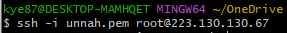ssh -i [pem 파일] [관리자 이름]@[공인 IP]