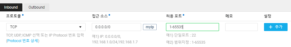 현재 서버에 연결된 ACG 설정에 들어가서 Inbound에 이렇게 추가해줍니다
