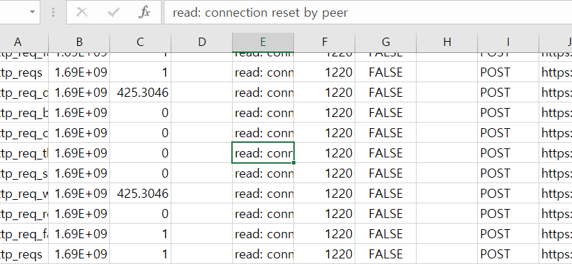 결과 csv를 확인해보니 connection reset by peer라는 에러가 발생하고 있었다