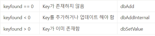 이 때, dbAdd와 dbAddInternal 함수의 사용법이 눈에 띄었다.