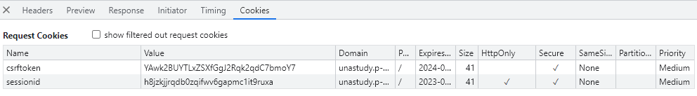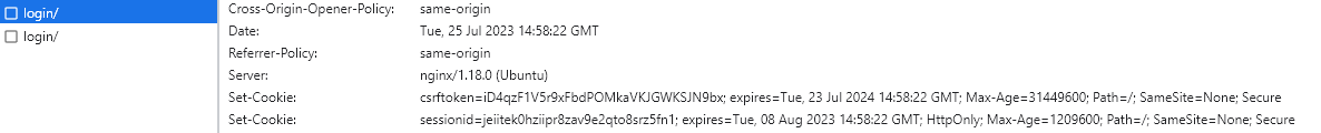 로그인 요청의 응답 헤더를 보면 Set-Cookie 부분에